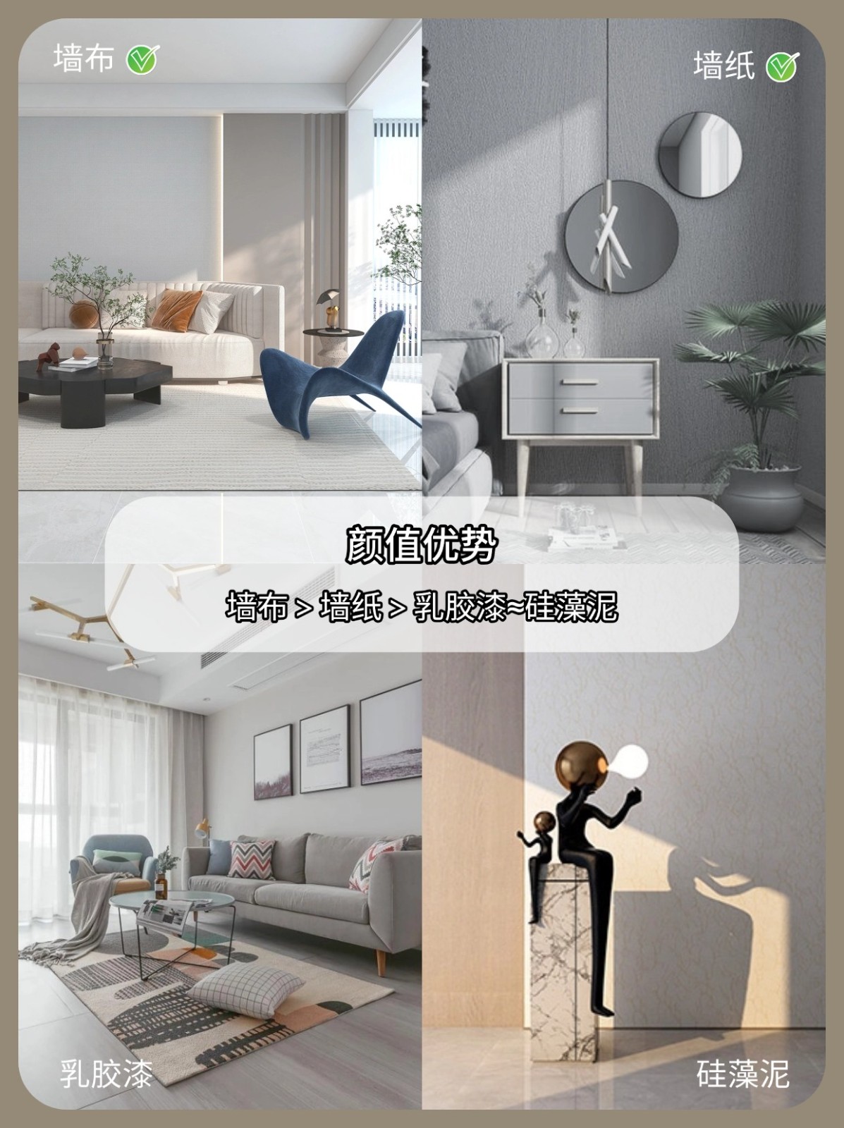 墙布和乳胶漆是整体性价比较高、踩雷风险低的墙面材料。若是预算充足,建议选择墙布,尤其强推#天洋墙布。