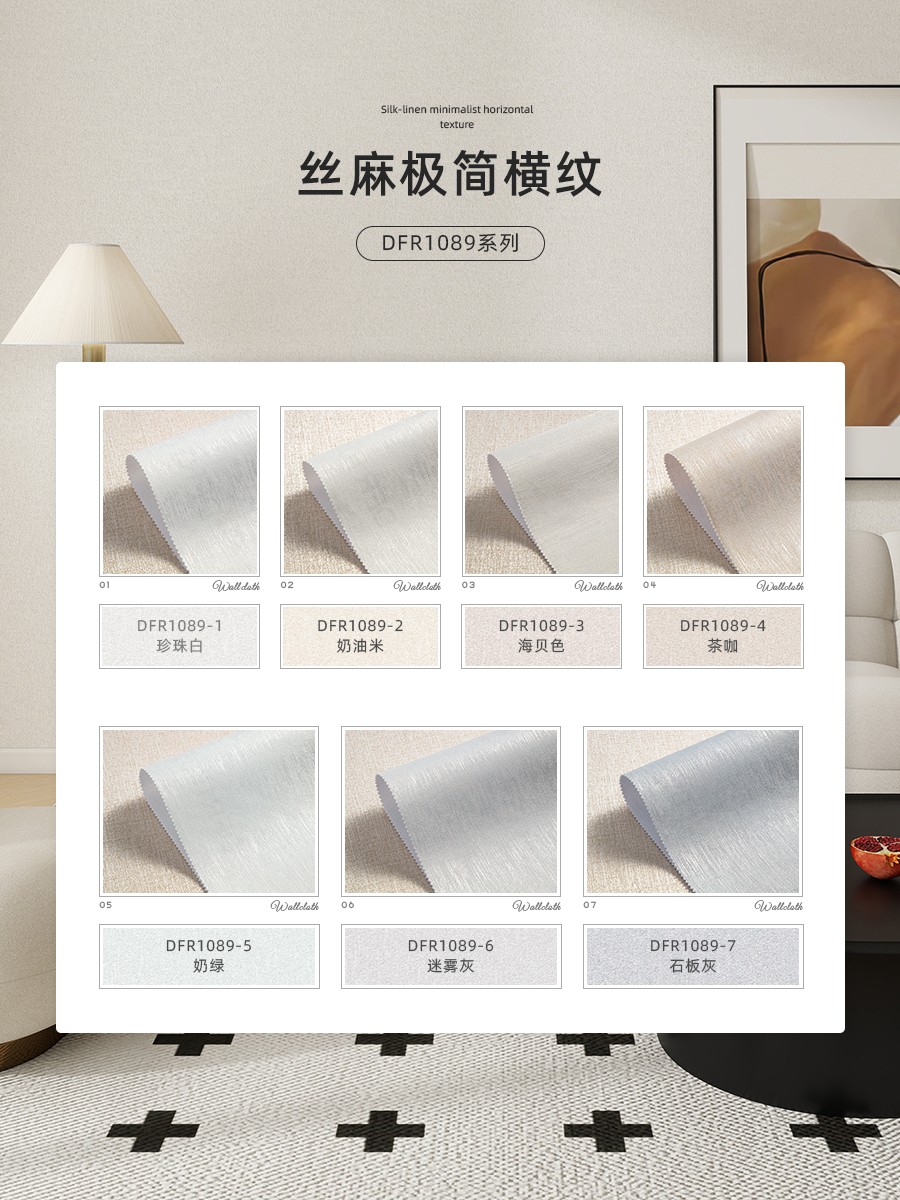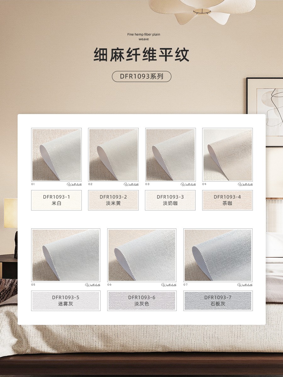 天洋墙布新品《叙光》系列以「自然、沉静、环保」为设计内核,融合仿生纹理与工业风纹理,精准还原丝麻、亚麻、矿物等自然质感,打造5款原生质感肌理,温柔细腻、软糯厚重。